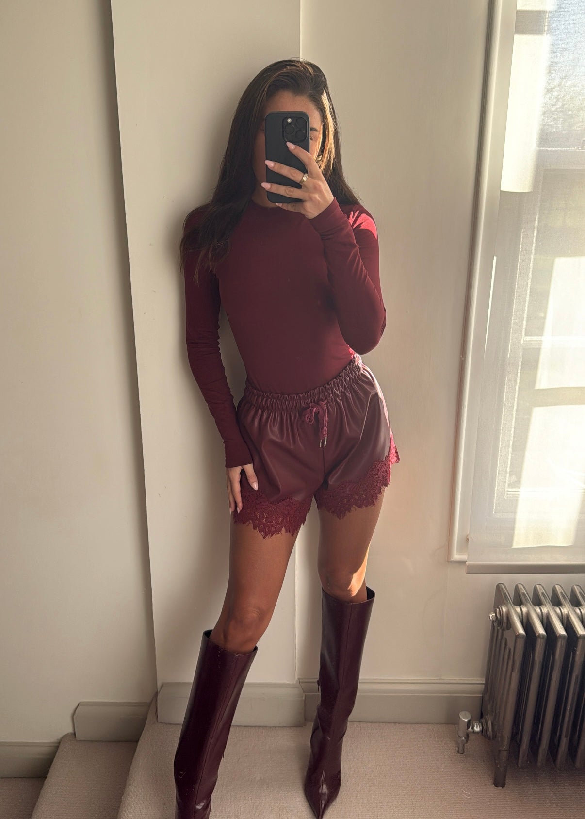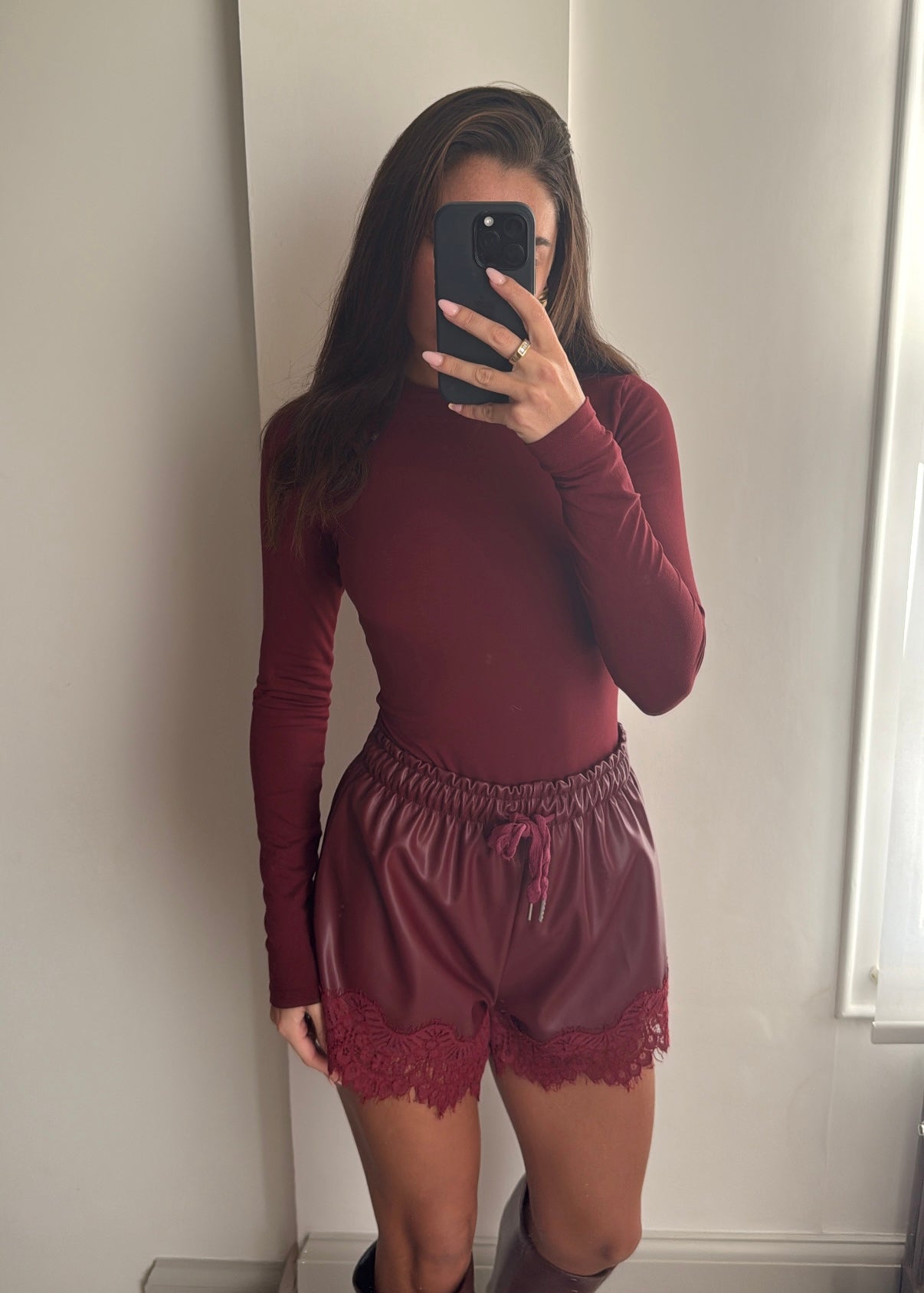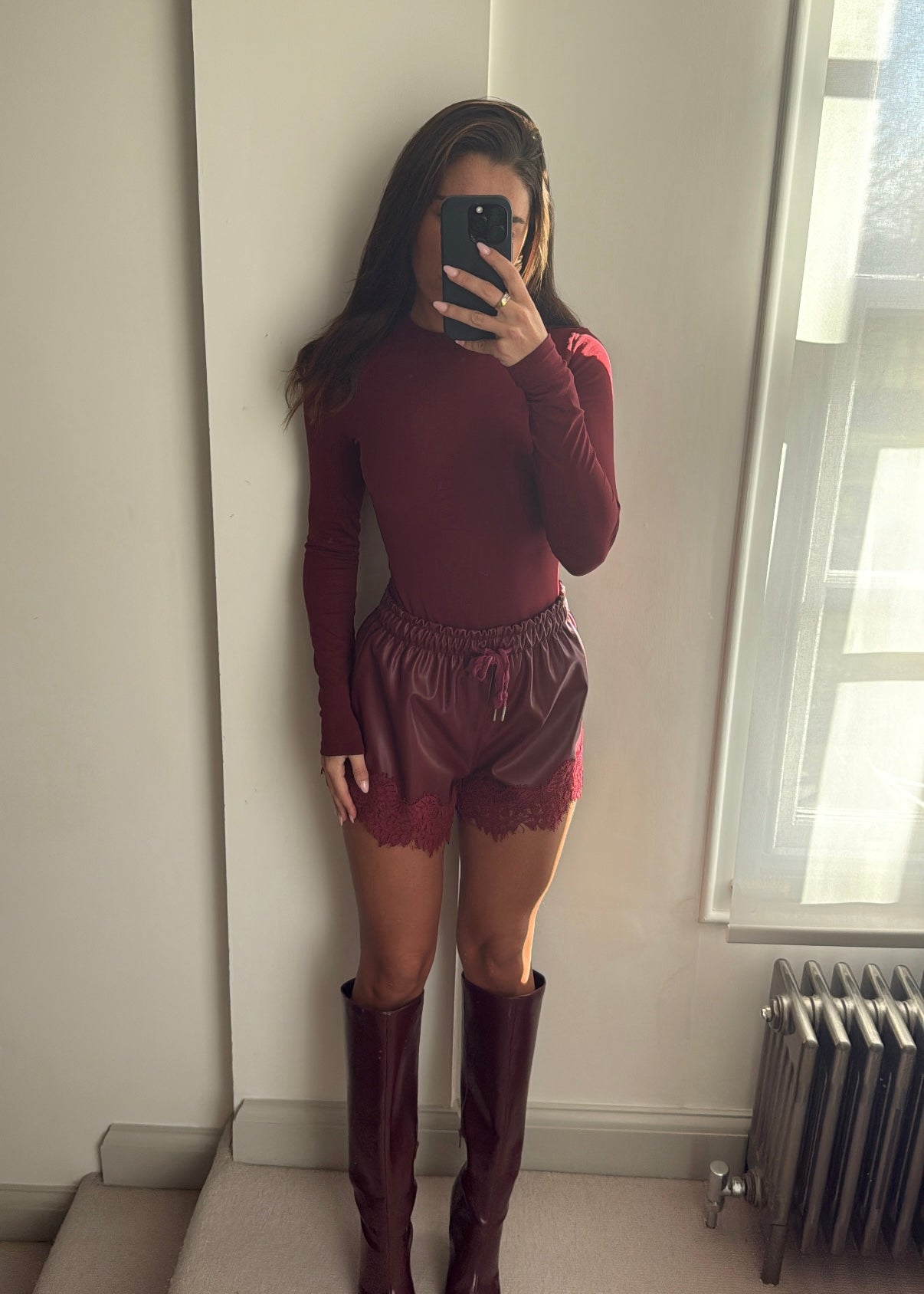 Zena Oversized Teddy Bomber Jacket - Burgundy