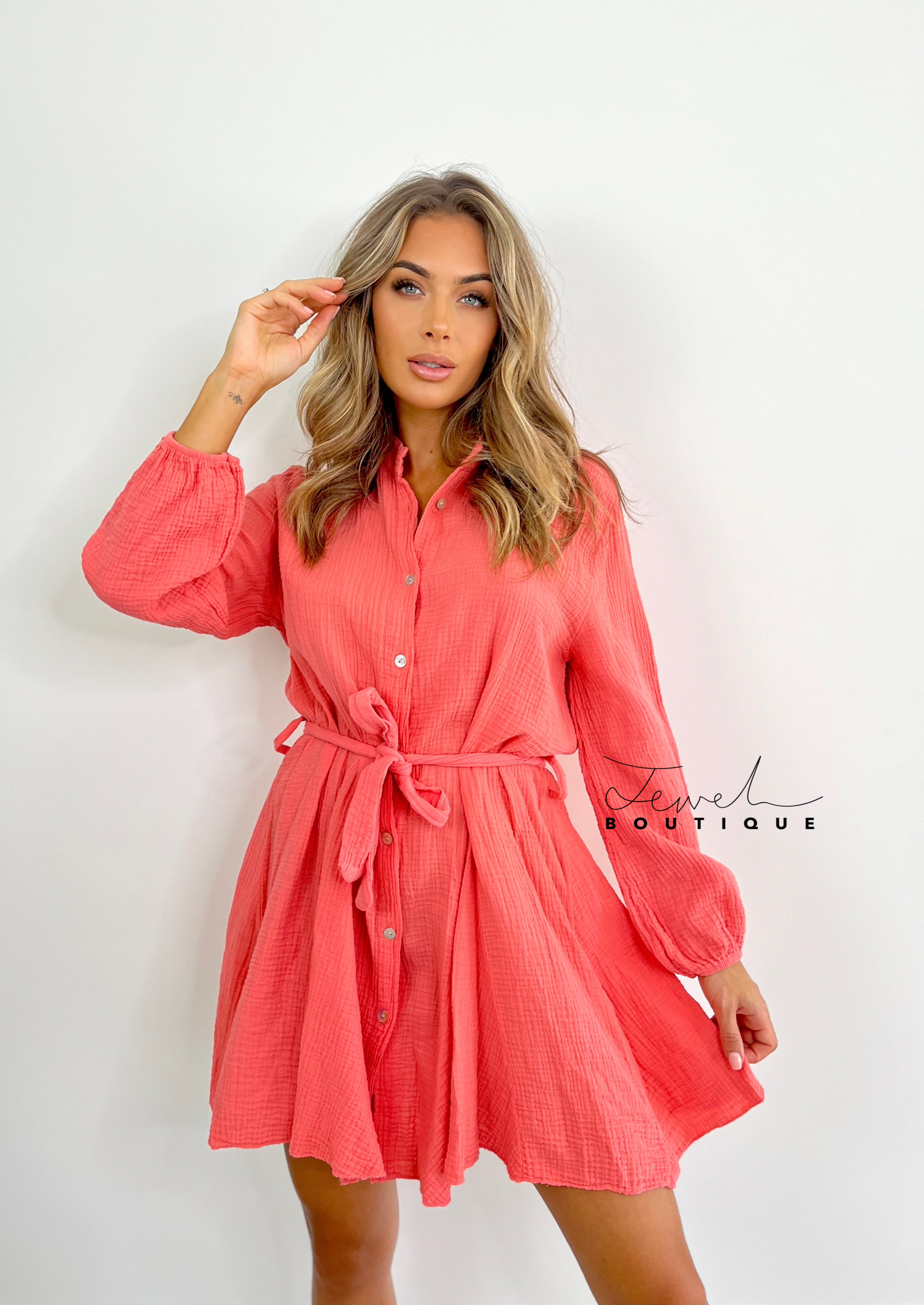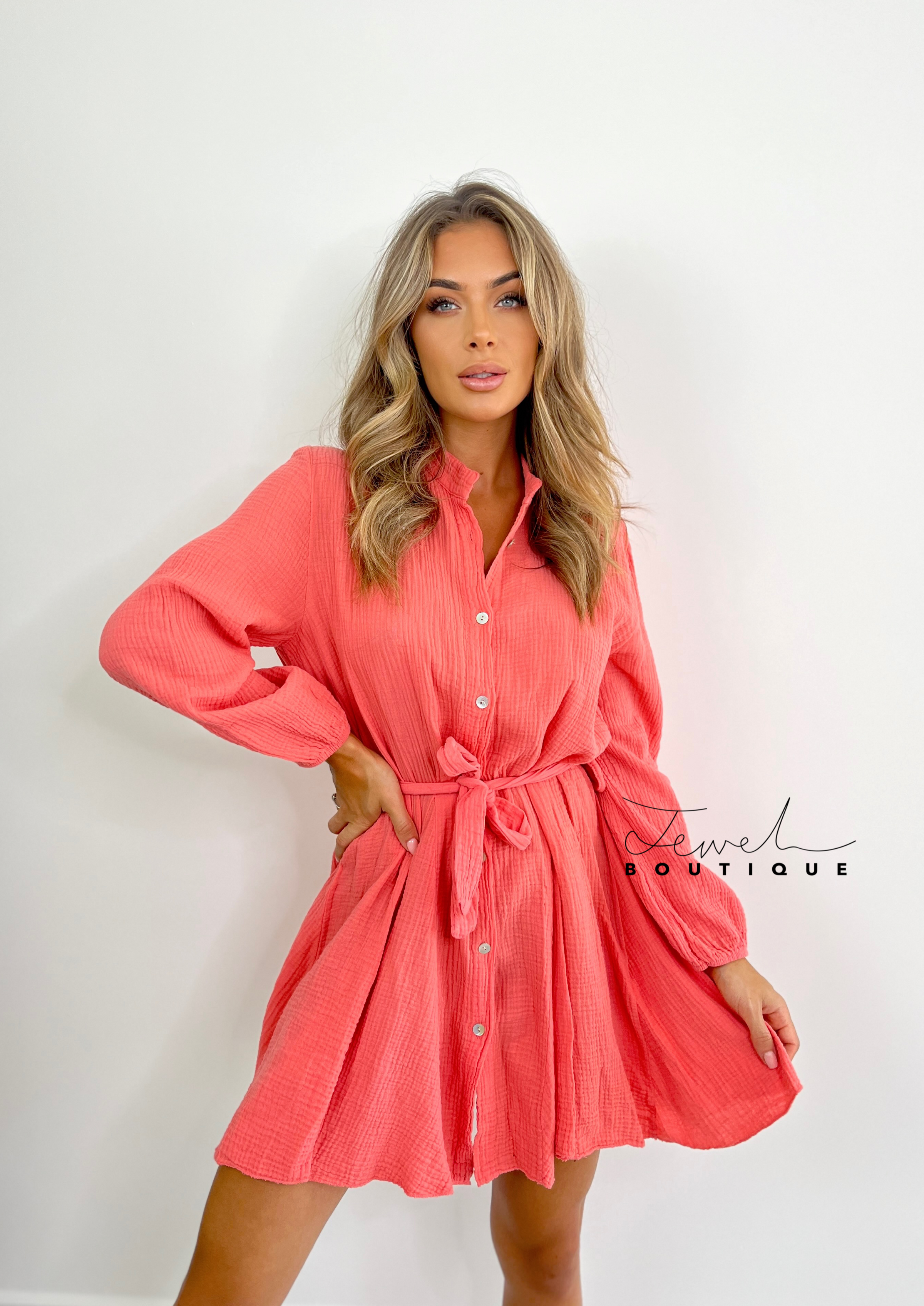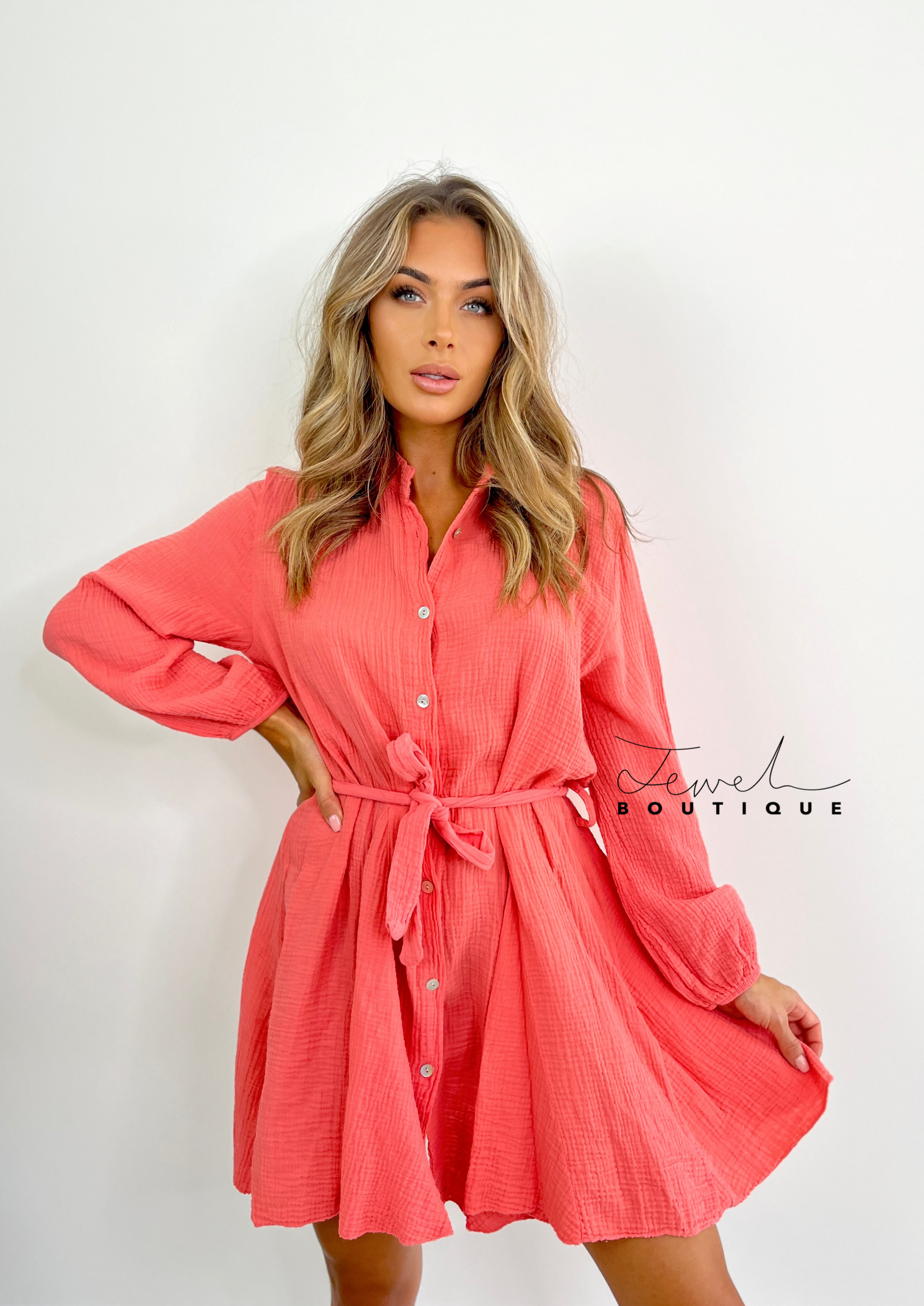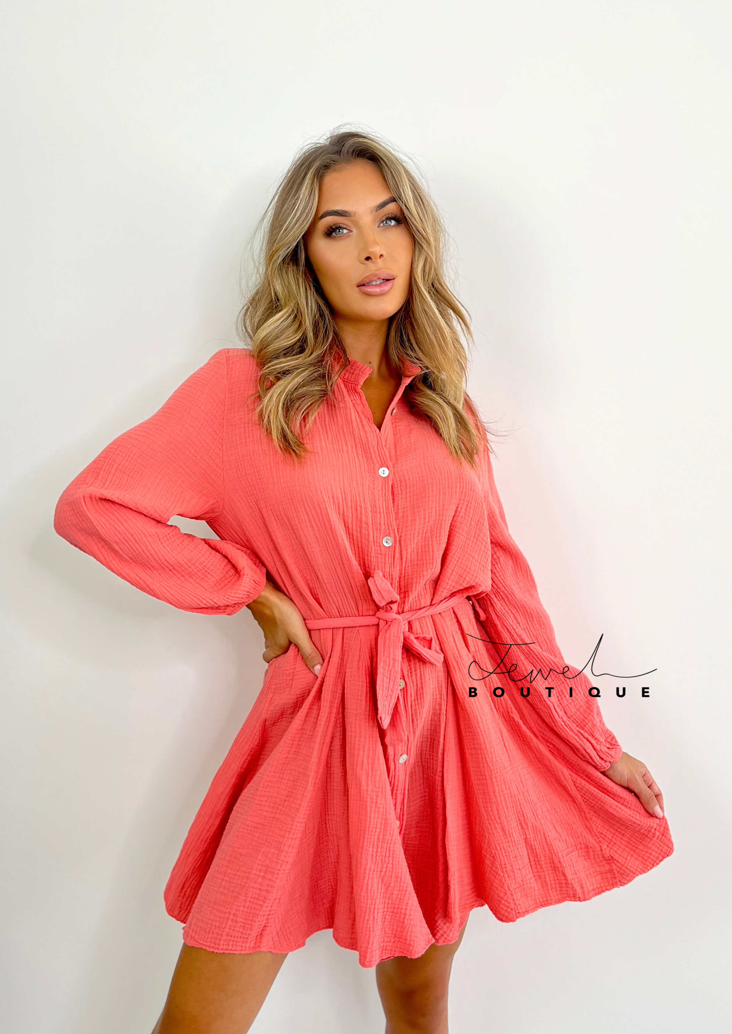 Harper Coral Belted Dress